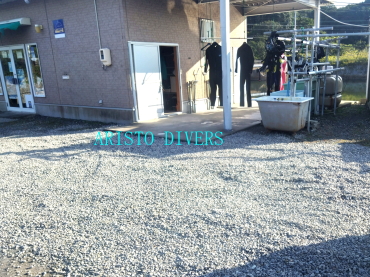 賢島本店の駐車場から器材洗い場にかけての